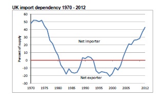 From these stats it is easy to see that the UK remains a net importer of energy and our dependence level increased by 43%. Below is a graph showing the trends from 1970 to the current day.